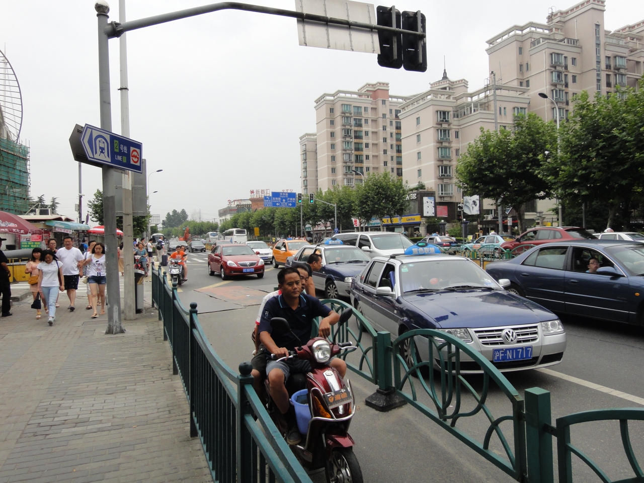 上海では朝夕の渋滞時は乗らない方が無難。捕まえるのも大変です。