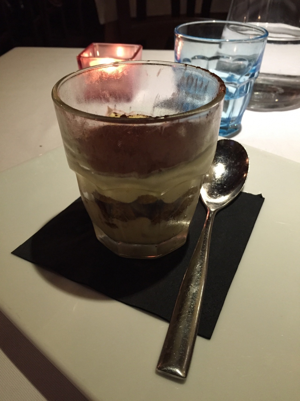 ドルチェも結構オススメです。メニューのドルチェの横には、それぞれ食後酒のおすすめが書いてあります。最後まで美味しく終わるために、このおすすめに従ってみるのもいいかもしれません。ちなみに私はティラミスのみ注文をしました。カップに綺麗にいれられたティラミスは、甘すぎないので最後まで飽きずに召し上がれます。