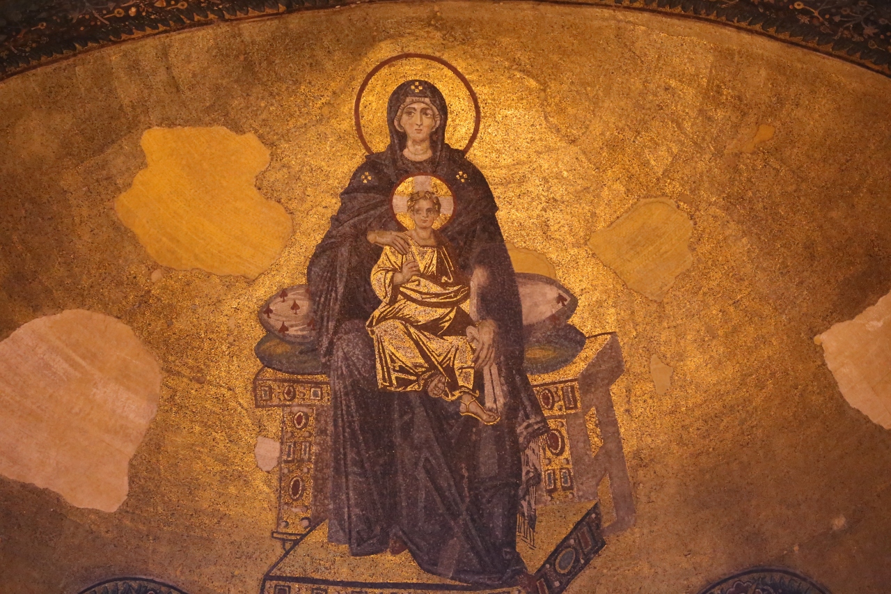 ローマ帝国時代にギリシャ正教の総本山として創建されながら、その後オスマン帝国の支配下に入ってイスラム教のモスクに改修されるという数奇な運命を辿った聖堂。偶像礼拝が禁じられたことで一度は漆喰で塗りつぶされてしまった美しいモザイク画も修復が進み、再び見事な姿が蘇ってこうして見れるようになったことは嬉しい限り。