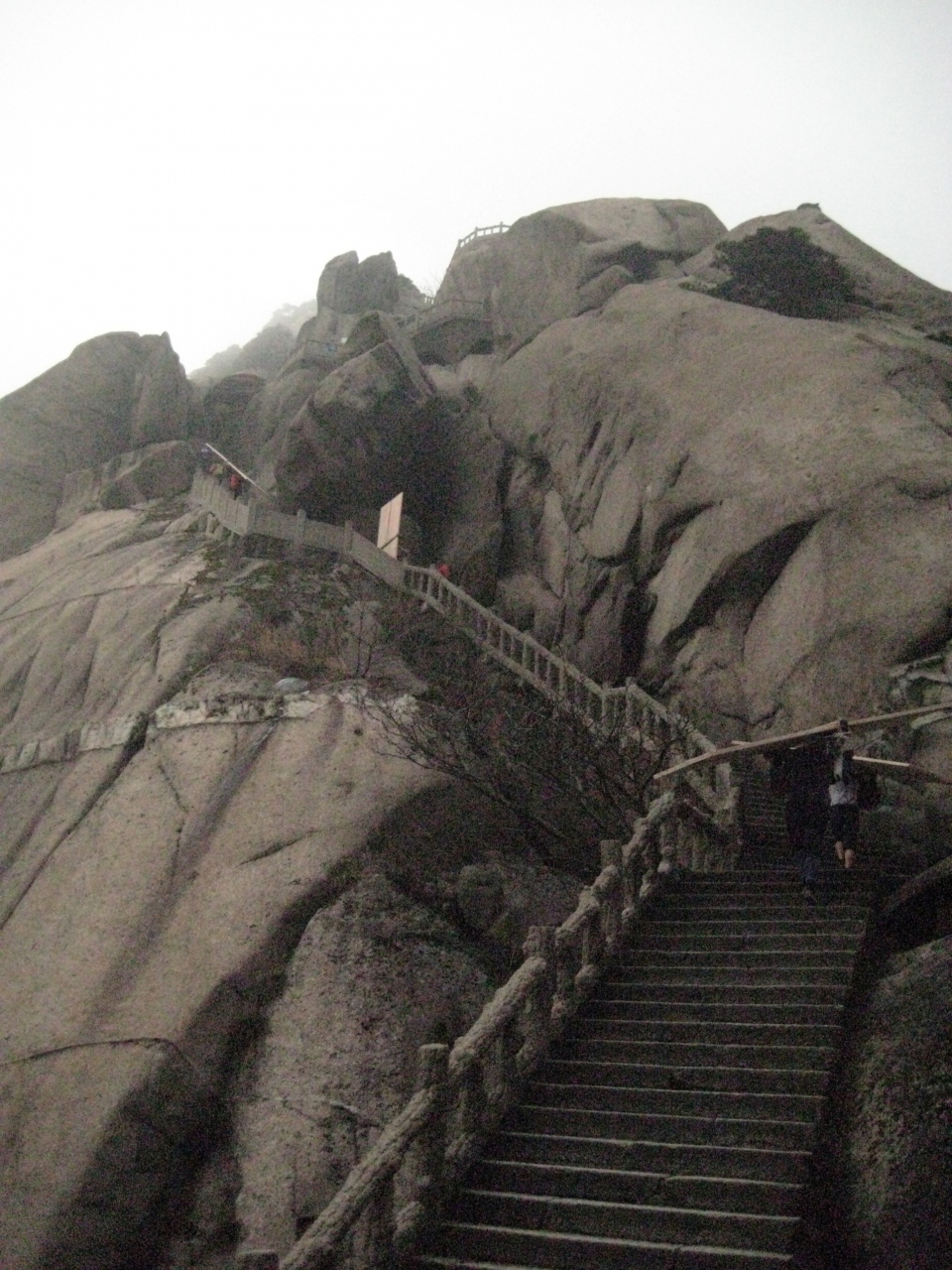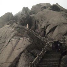 黄山前山にある慈光閣ロ−プウェ−は現在改修工事で運休中(2014年12月現在)。その為、登山客も少なくかえってノンビリと玉屏までの景色を堪能しながら歩けます。後山にある雲谷索道は営業しているので団体客などはそちらから入山しています。山上は大混雑で時には渋滞も発生。特に百歩雲梯は手摺もない急な石段なので慎重に進む必要があります。