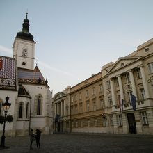 ザグレブ旧市街にある聖マルコ教会のすぐそばに“国会議事堂”があります。