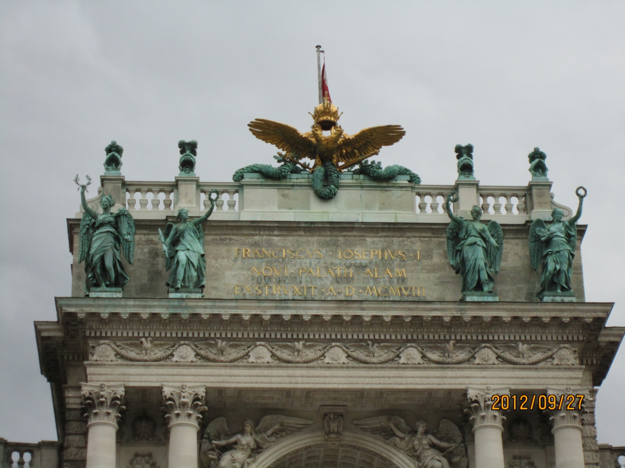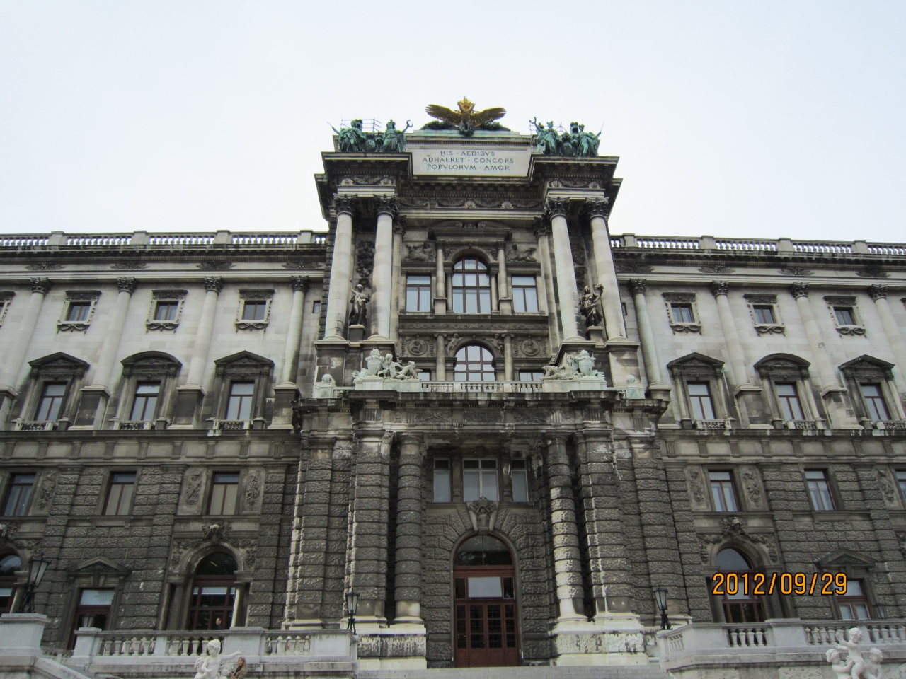 ブルク門をくぐると壮大なホーフブルク王宮が姿を現わします。フランツ・ヨーゼフ皇帝の命で1881年に建設が開始され、1913年に完成し、1918年までハプスブルク家歴代の皇帝の居城でした。新王宮の前には、対トルコ戦争の英雄オイゲン公の騎馬像が立っています。現在はオーストリアの連邦大統領公邸、乗馬学校や図書館など多くの博物館として利用されており、シシィ博物館・皇帝の部屋・宮廷銀器コレクションは共通チケットで見学できます。特にエリザベートの生涯を綴ったシシィ博物館は心に残るものがあります。