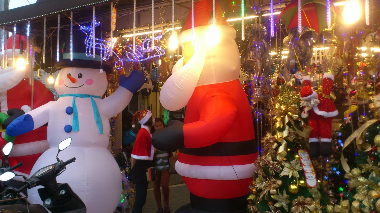 長安西路--イベント用の飾り物や玩具やパーティグッズを扱う問屋 季節にあわせて商品が変わります。クリスマス用品を扱うお店はクリスマスを過ぎると旧正月(台湾の新年)用品の販売に切り替わりますよ。