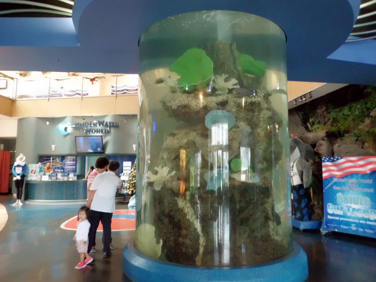 ホテルロードに面していてDFSのすぐ目の前。グアムで一番観光客でにぎわっている場所に水族館があります。名物は100メートル続くトンネル型の水槽。最新の水族館にはかないませんが、それなりに楽しめます。入り口の巨大なサメの歯は写真スポットに最適。魚を見ながらディナーも食べらる企画もやっているようです。