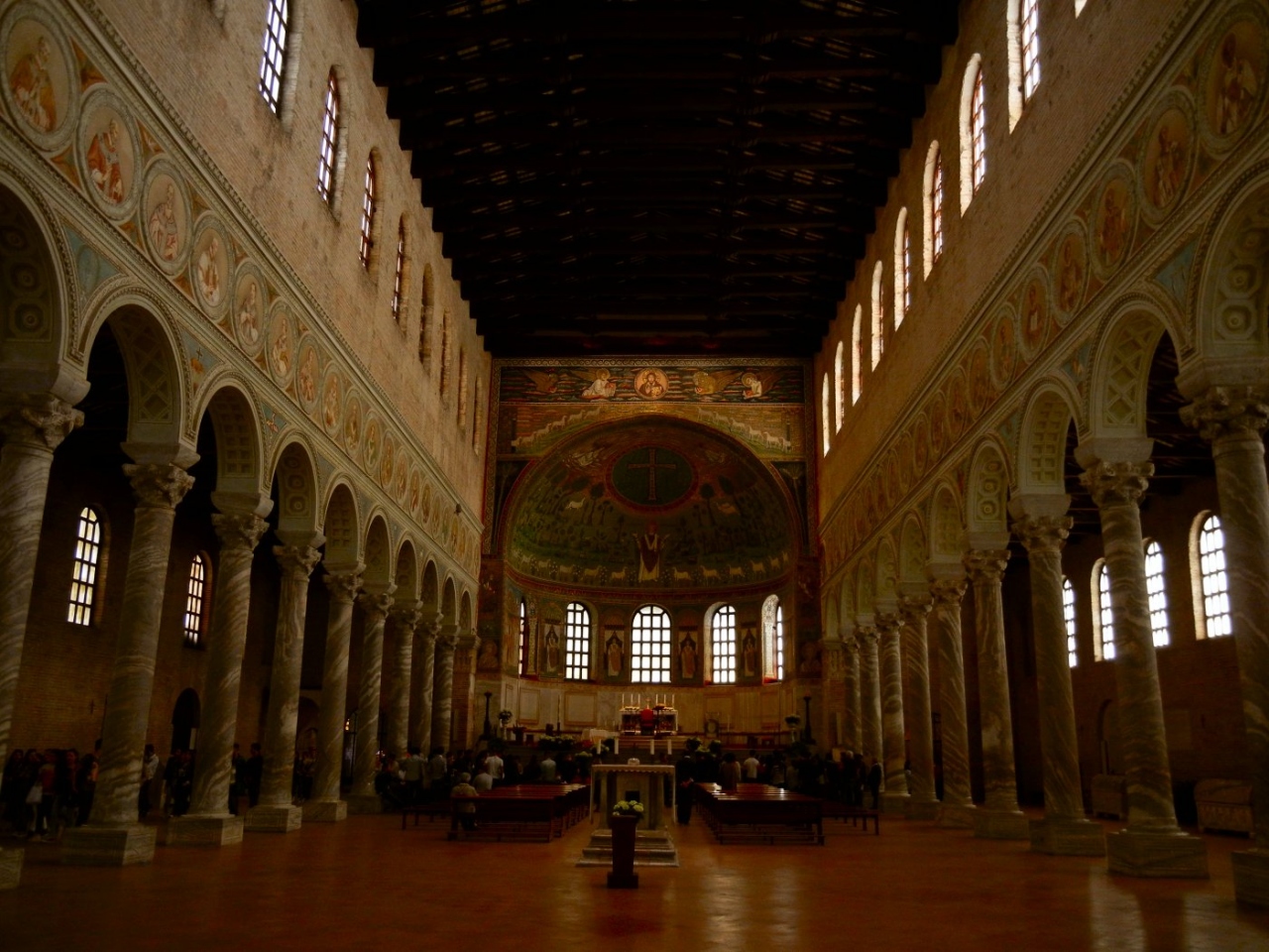 ラヴェンナの駅前から4番のバスに乗って行く。ちなみに4番のバスは途中で違う方に曲がるバスもあるから、運転手さんに「ヴァ・ア・クラッセ?」(Va a Classe?=クラッセに行きますか?)と聞いてみる方がいいかも。