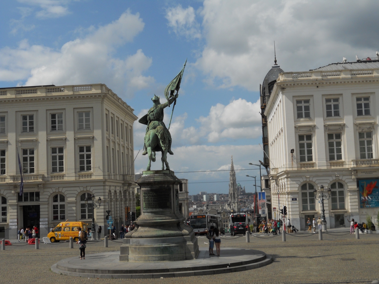 グラン・プラスから中央駅にぶつかったっら右に曲がって少し進むと、左手に長い階段で上にのぼれるようになっている大きな広場があります(王立美術館方面)。そこをのぼると左手に楽器博物館が見えてきて、ロワイヤル広場にぶつかります。このロワイヤル広場から振り返ると、ブリュッセルの街が一望できます。ガイドブックには掲載されていませんが、王立美術館に行かれた際は是非お立ち寄りください。