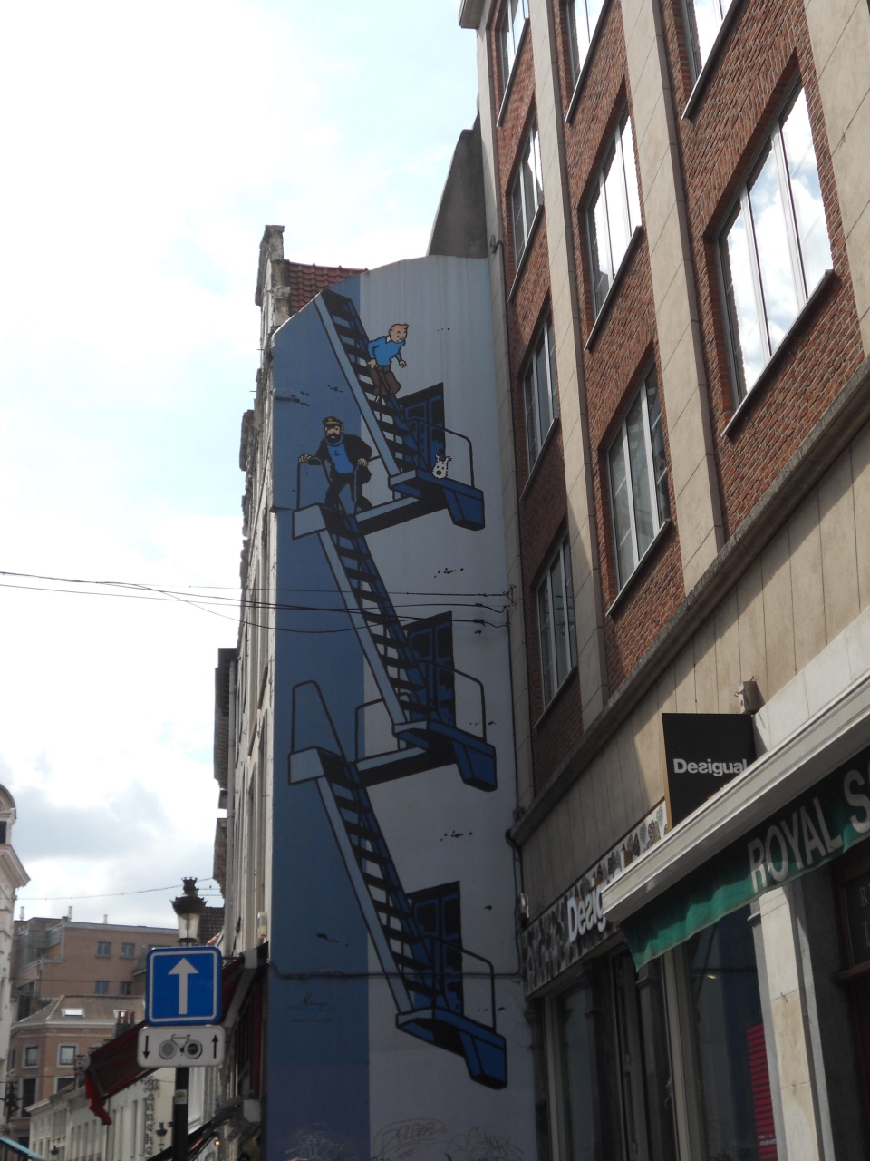 グラン・プラス市庁舎の脇の「セルクラースの像」を見学してから小便小僧へ向かう通りです。途中右手のビルの壁に「タンタンの壁画」がありますので、見逃さないように注意しましょう。かなり人通りが多いので、スリにもご注意を。