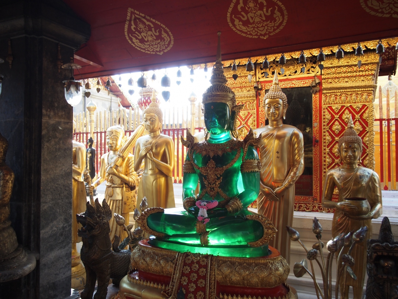 ケーブルカーに乗り山頂の寺院まで行きます。ケーブルカー乗らなくても行けますが、凄い数の階段です。寺院は金色すぎて眩しいです。寺院をバックに写真を撮ると逆光となり、常に人の顔は真っ黒です。寺院には生まれた日の曜日の仏像が並んでいます。