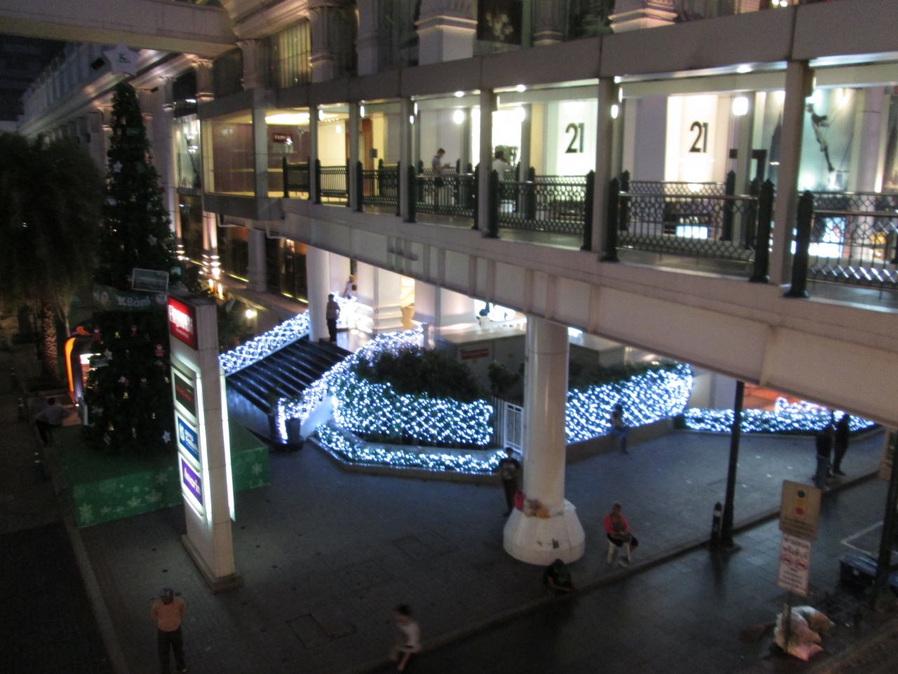 11月下旬になるとチットロム駅周辺のショッピングセンターではきれいなクリスマスツリー、イルミネーションが見られるようになりました。駅構内には年末に向けたセールの広告看板があるなかで、親日らしい仮面ライダーとコラボしたおもしろい宣伝がありました。