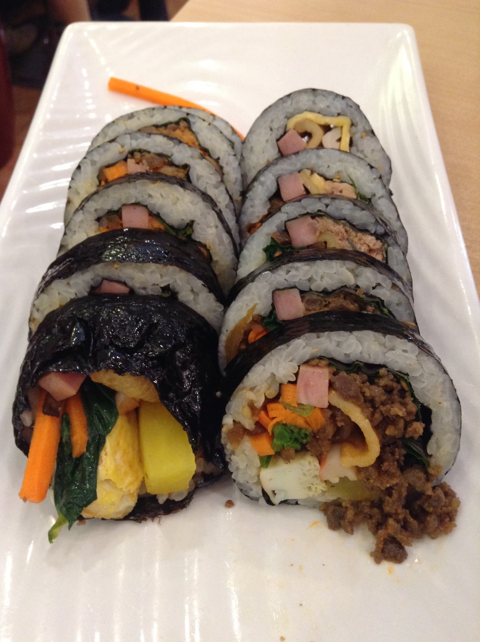 韓国のりで巻いた韓国風のり巻きキンパッ。