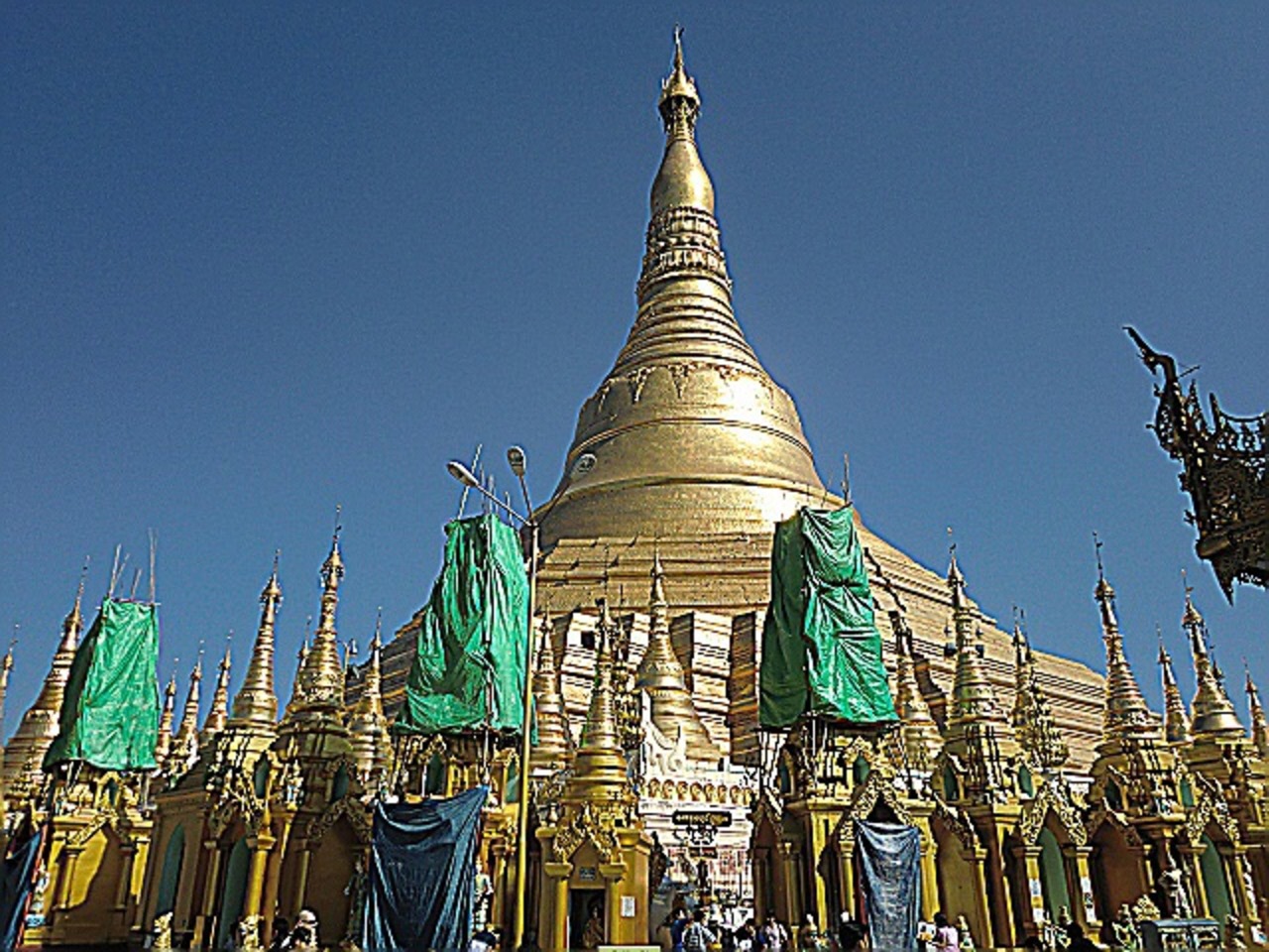 高さ99mの黄金色のパゴダで、全体が金箔で覆われ、上部には6000を超えるダイヤモンドやルビーなどの宝石がちりばめられ、最も大きいのは76カラットのダイヤモンドがあるようです…