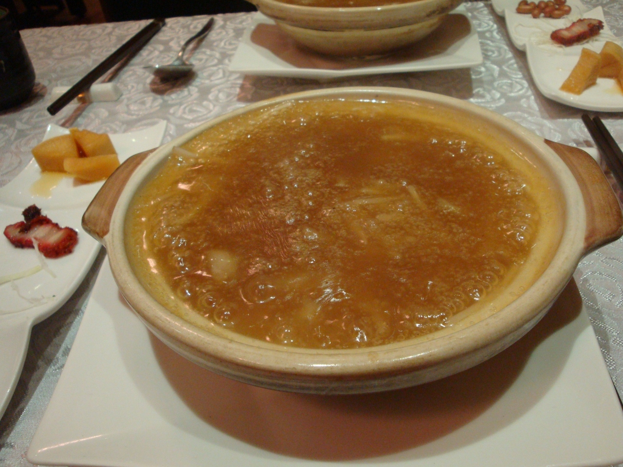 ふかひれとあわびとロブスターのお店に行きました。全てがセットになっており、注文すると、前菜、おかず、チャーハンORビーフン、デザート、ドリンクが付いてきます。2人で一人はふかひれと、アワビのセット、一人はふかひれ(並)を注文、別にイカ団子と空芯菜の炒め物を注文しましたが、結果から言うと食べきれないほどの量でした。二人でふかひれとアワビのセットにすればよかったと若干後悔・・・。それでも食べれるだけ食べましたが、贅沢なランチになりました。