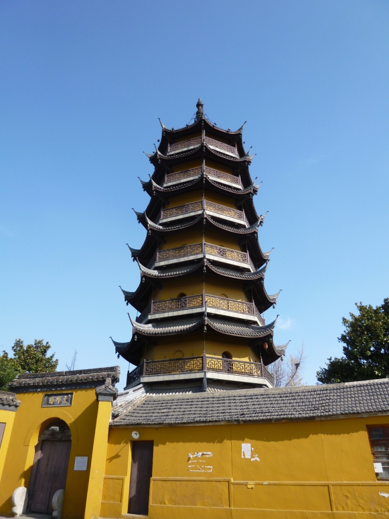 16世紀、明の時代に建てられた8角7層の楼閣式塔です。揚州の古運河に面しており、かつては運河を行き交う交易船の目印となっていたことでしょう。19世紀の半ばに中芯の部分を残して崩落し、20世紀に入って「再建」されたため以外と新しく感じられます。