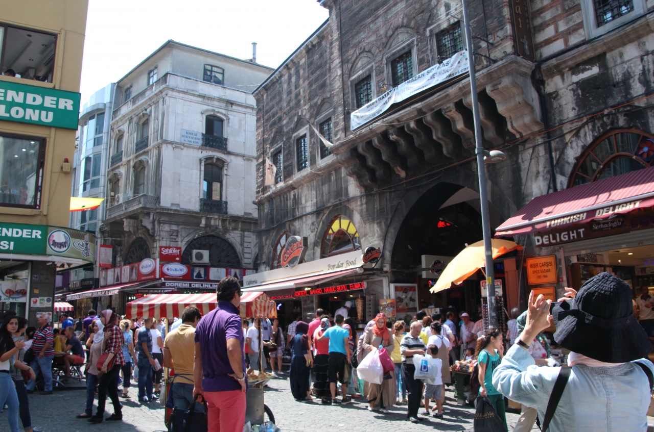 この中のレストランで昼食をとりましたが、バザール自体はグランド・バザールより地元の人が多いように思いました。イェニ・ジャミィに近く、日用品や食料品、スパイスなどを扱うお店が軒を連ねています。もともと香辛料専門店が多かったことからスパイス・バザールとも呼ばれていたそうです。行ったのが日曜日ということもあり、あまりの人の多さにレストラン利用後は入口付近をちょっと歩いただけで撤退してしまいました・・・