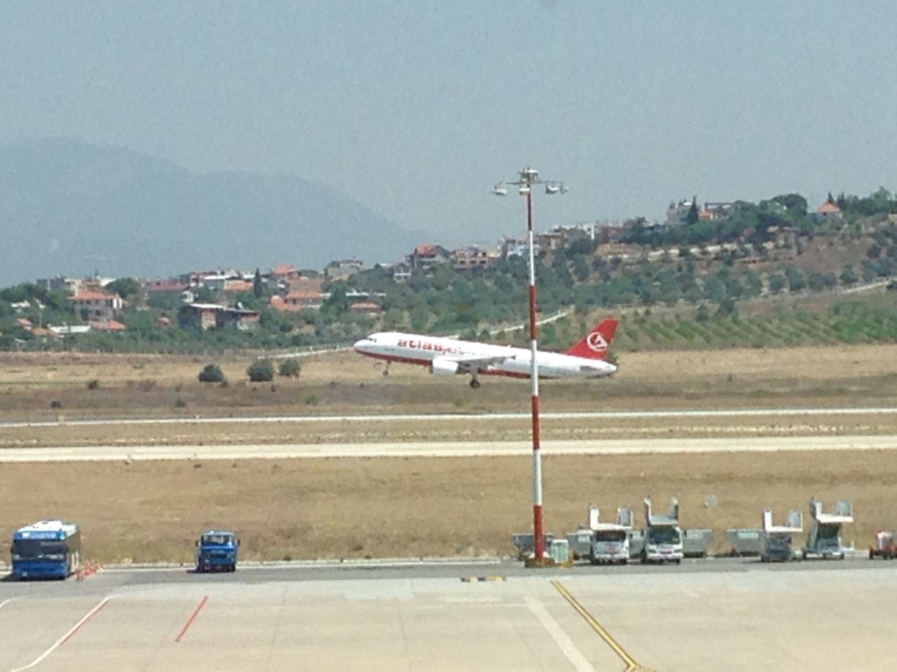 セルチュクから空港までは航空会社のシャトルバスが出ているようでしたが、乗り場がわからず電車で向かいました。