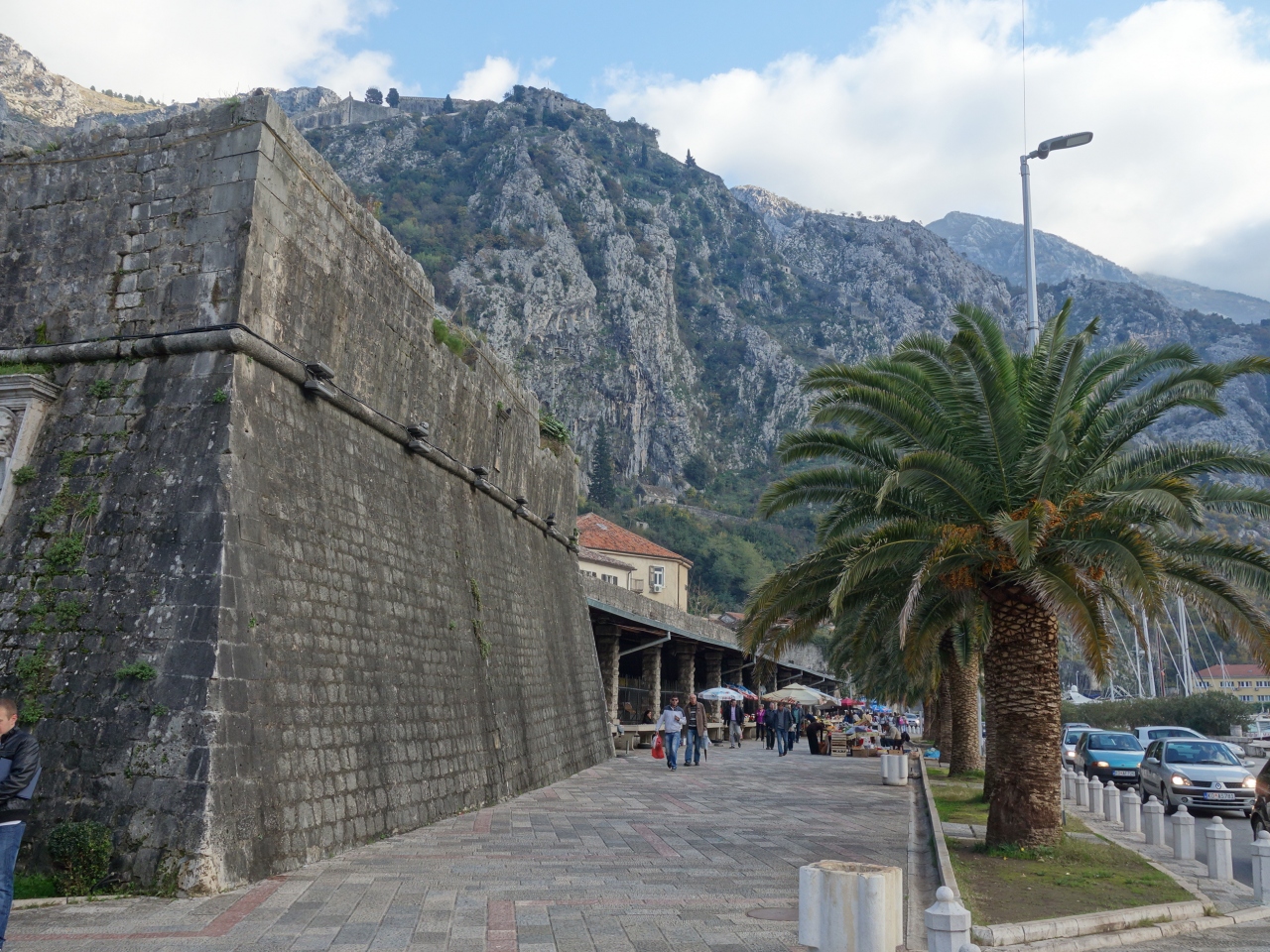北側(シュクルダ川沿い)と南西側(港の側)に城壁があります。山側には城壁はありません。