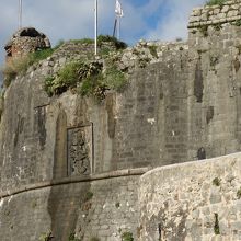 山側には城壁はありません。山があるのでそれが自然の防御になっているので,城壁を築く必要がないからです。(物理的に築けない。)川沿いの城壁と正門周りの城壁はきれいに残っています。中世には外敵から守るために城壁が必要だったのでしょうか。