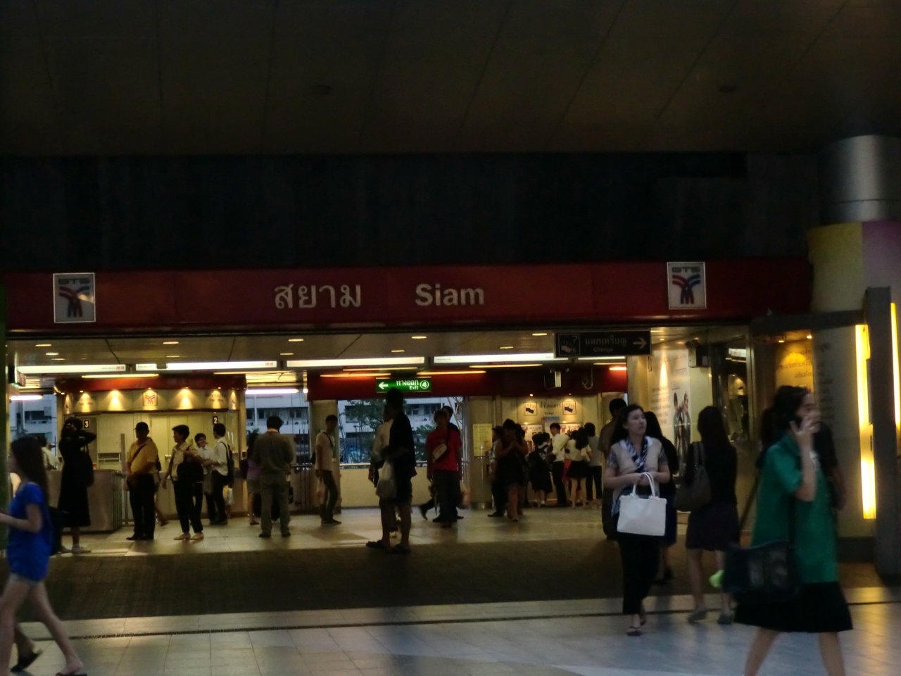 BTSの2線が交差する中心駅で、乗り換え駅としてすごい混雑です。マーブンクローンセンターや、サイアムパラゴン、東急などバンコク一のショッピングゾーンでもあり映画館、水族館などもあるエンターテイメントゾーンとして終日にぎわっています。