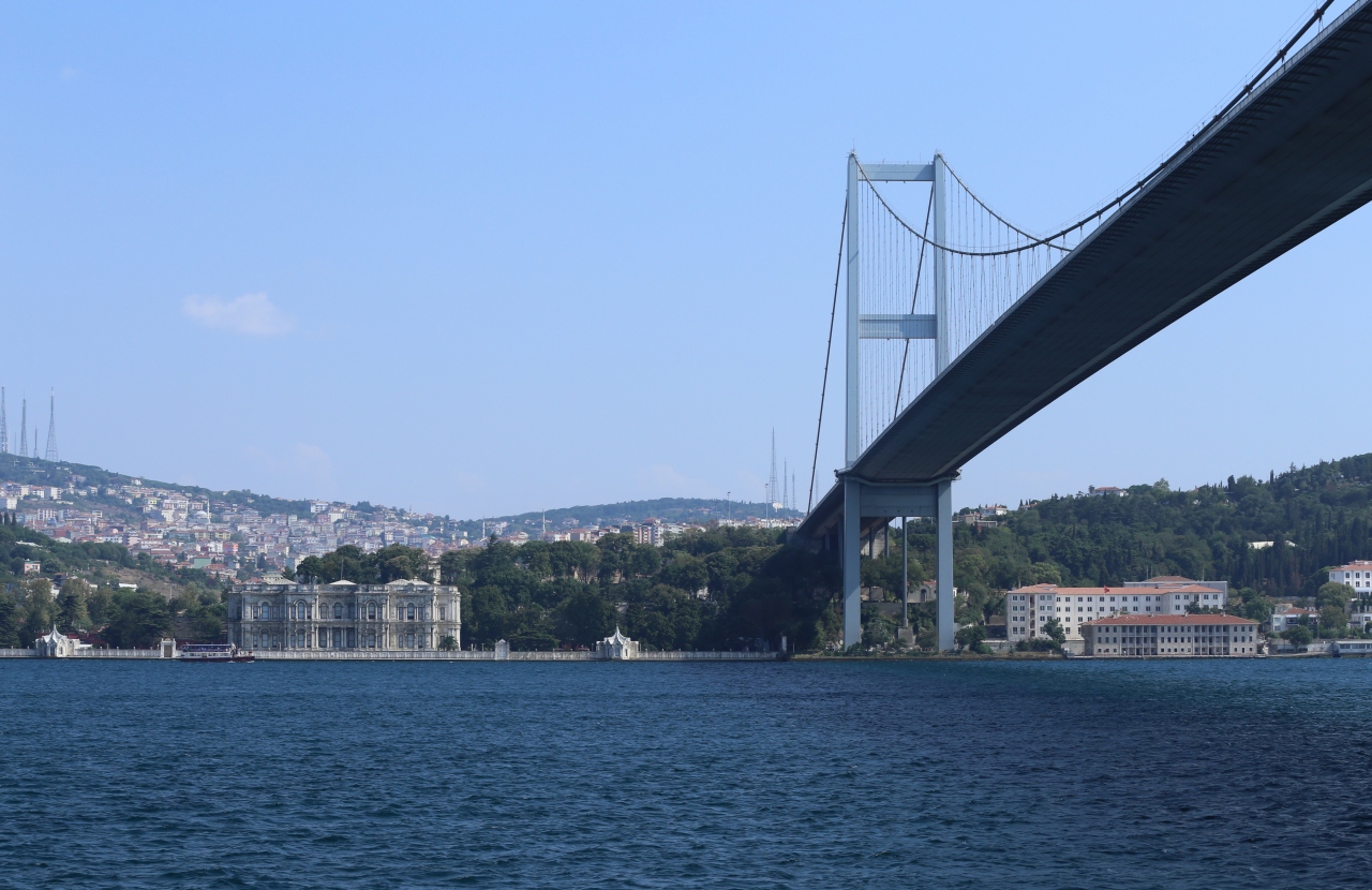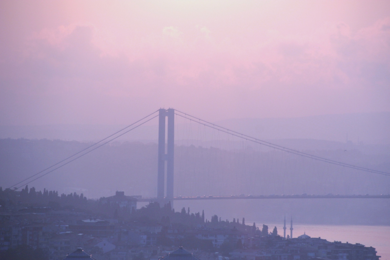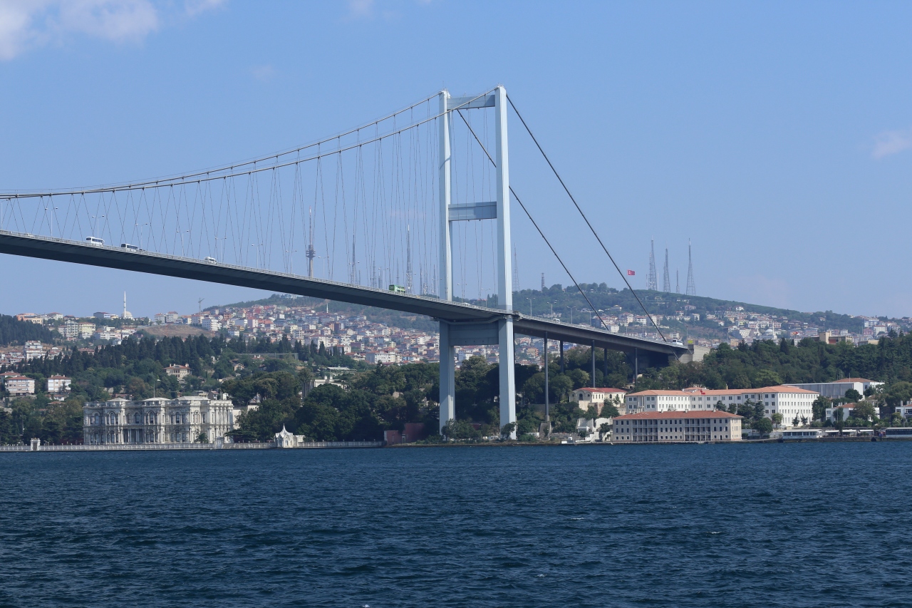 ボスポラス海峡には2つの大きな橋がかかっていますが、これは1973年にイギリスとフランスによって最初に架けられた橋だそうです。全長は900mにも及び、夜はライトアップもします。宿泊した新市街のホテルからも良く見えました。