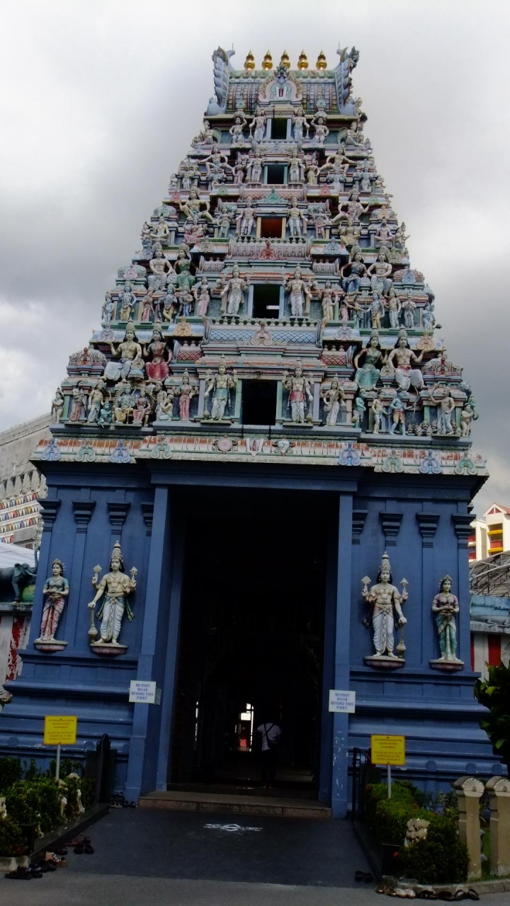 リトルインディアの奥のほうにある寺院。大きな建物が通り沿いにあるのでよく目立つ。青を基調とした建物で、屋根の装飾も、内部の装飾も大変豪華で荘厳。日本ではあまり見られないものなので、とてもよかった。内部には靴を脱いで入る。現地の方々が真剣に祈っていらっしゃった。