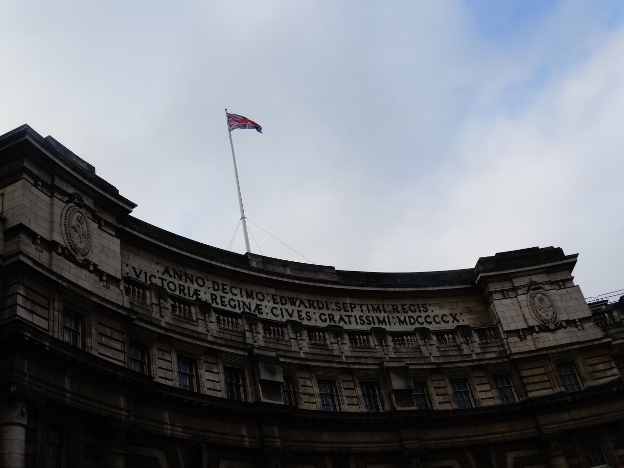 曲線カーブを描く荘厳なアーチです。とにかく厳かなでかっこいいこの門がバッキンガム宮殿に通ずる道なのです。1912年にビクトリア女王をたたえて造られた門だそうです。大きさはなんと8階建てだそうです。一部は隣にある国防省の建物とつながっているのだとか。