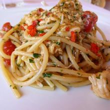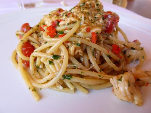 @パスタ:イセエビの身とミソたっぷりのペペロンチーノスパゲティ