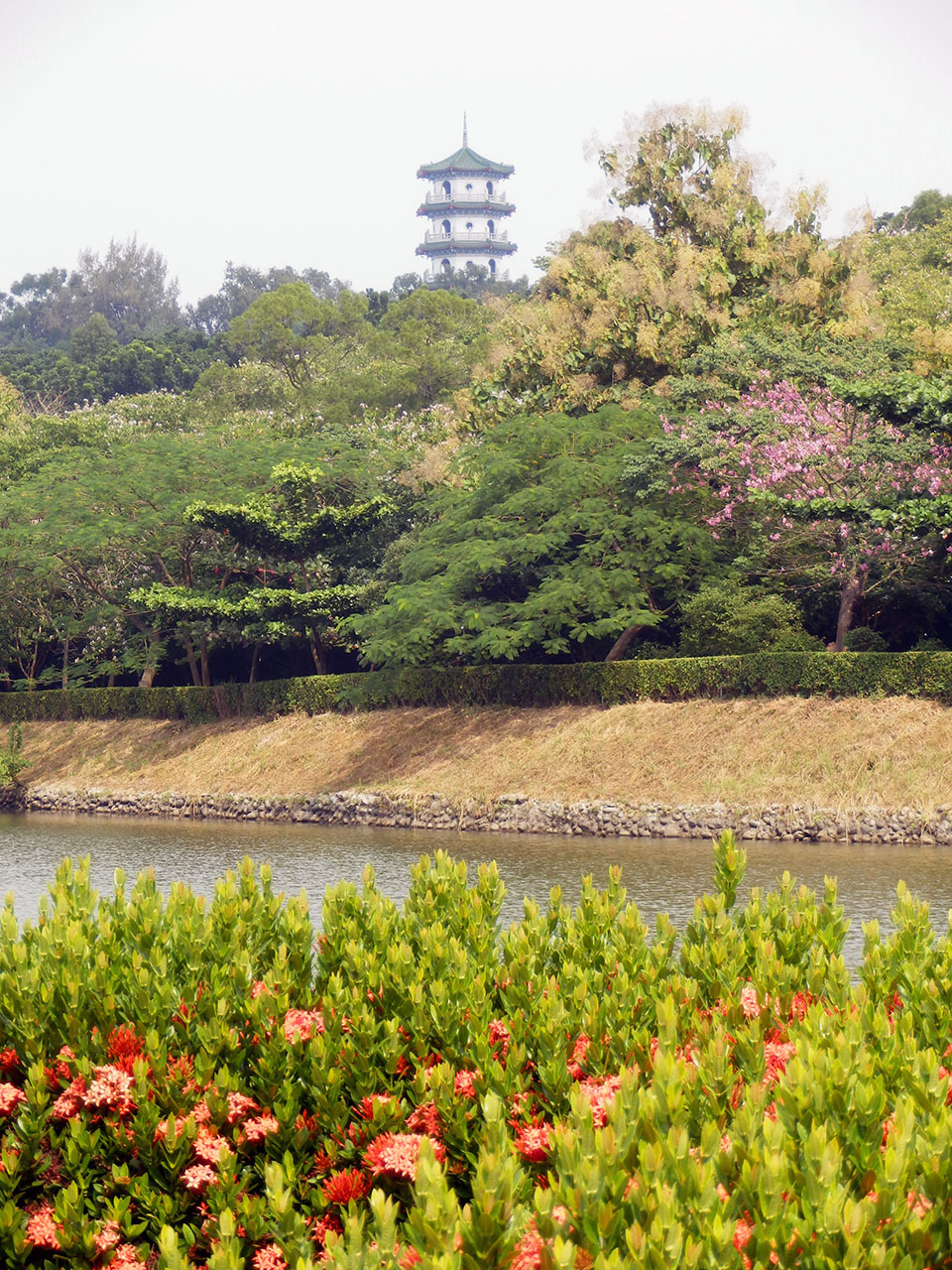 高雄駅前から60番のバスで30分ほどで入口に到着します(バスは上りと下りの方向に注意)。 入園料を支払い中に入ると個人タクシーがNT$500で90分で見どころを回ってくれるとのことで、かなり蒸し暑かったせいもあり、この誘惑に負けてしまいました。 見どころは数か所にあり、これを徒歩で移動するとかなりの時間がかかります。また、入園の際にもらった地図はおおざっぱなので、初めての訪問だと見たいところに行くのがわかりにくいと感じました。また蓮池潭と比べて圧倒的に人が少ないのがいい。