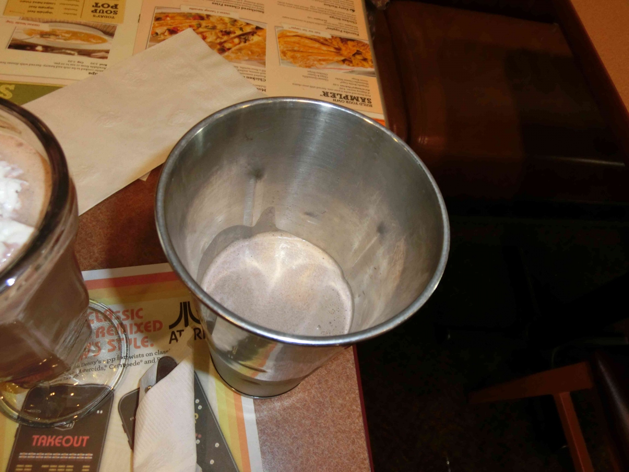 ドリンクは、4ドルくらいのチョコピーナッツバターシェークを注文したら、普通にグラスで1杯と別に、何故かピッチャーで2杯目のおかわり分も一緒に運ばれてきました。サービスなのか、2杯分が普通なのか分かりませんが、何か得した気分でした。美味しかったですし。