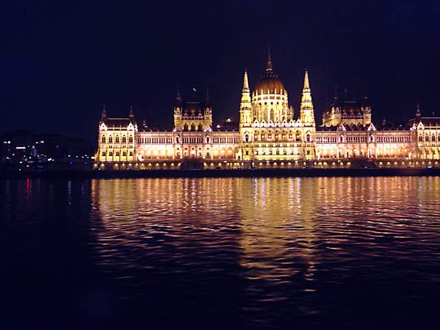 ペストの河岸に一際目立つ豪華絢爛な建物が国会議事堂です。ハンガリー王国は1873年ブダとオーブダ、ペストの3地区を合併してブダペスト市を作って首都と定めました。そして1885年から約20年かけてこの議事堂を完成させました。建設には4000万個のレンガと40kgの金が使われたそうです。シンメトリックなファサードとセンターの聳えるドームが実にバランス良く、威風堂々とした見事な建築です。昼も美しいですが、その美しさが、より一層際立つのがライトアップされた夜です。ブタペストのライトアップを楽しむならドナウ川クルーズがオススメです。ため息が出るほどに壮麗です。