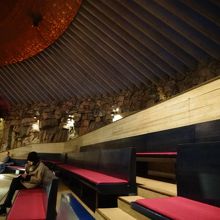 大岩をくりぬいた教会。日本人が好きそうなデザインです。日本だとウエディングに人気がありそうな、デザイン美が冴えわたります。上のガラスから自然光が差し込み神秘的です。岩の協会なので音響効果もよいそうです。ゴスペルか合唱を聞いてみたいものです。