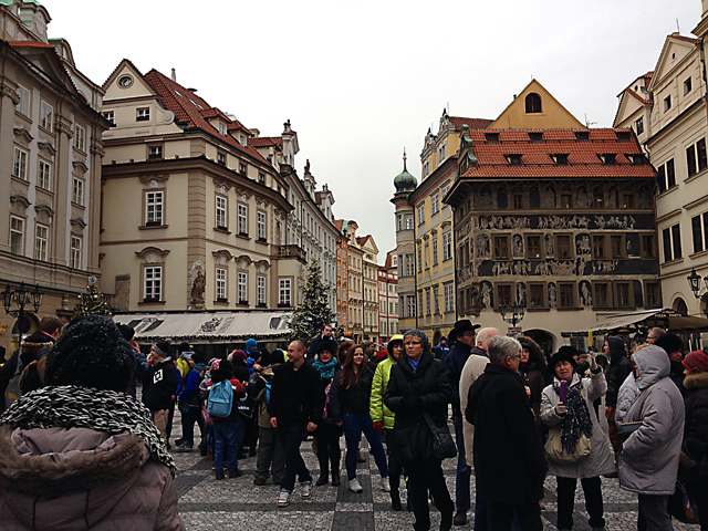 旧市庁舎やゴシック様式のティーン教会、バロック様式の聖ミクラーシュ教会など様々な建築様式を見ることができる旧市街広場は、いつの数多くの観光客で賑っています。旧市庁舎の塔に上ると広場を一望できます。旧市庁舎の天文時計も、レトロな仕掛け時計になっていて必見です。広場の中心にある像は宗教改革者ヤン・フスで彼の死後500周年目にここに設置されました。冬季には、クリスマスマーケットも催されています。