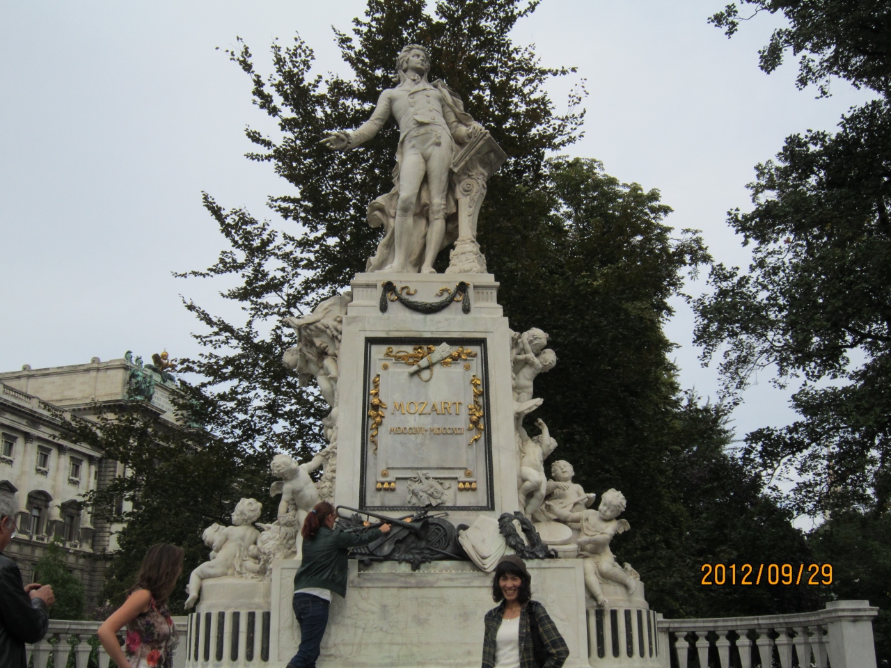 リンク道路に面した、ブルク庭園に立っており、前にある花壇の花はト音記号の形に植えられていいます。モーツァルトが生まれたザルツブルクのモーツァルト広場にも像がありますが、ウィーンの像の方が華やかさを少し感じます。この像は19世紀終わりにオペラ座の裏に建てられましたが、戦争で被害を受けたため、現在の場所に建て直されました。この庭園のベンチにはいつも誰かが座り、静かに憩っていました。