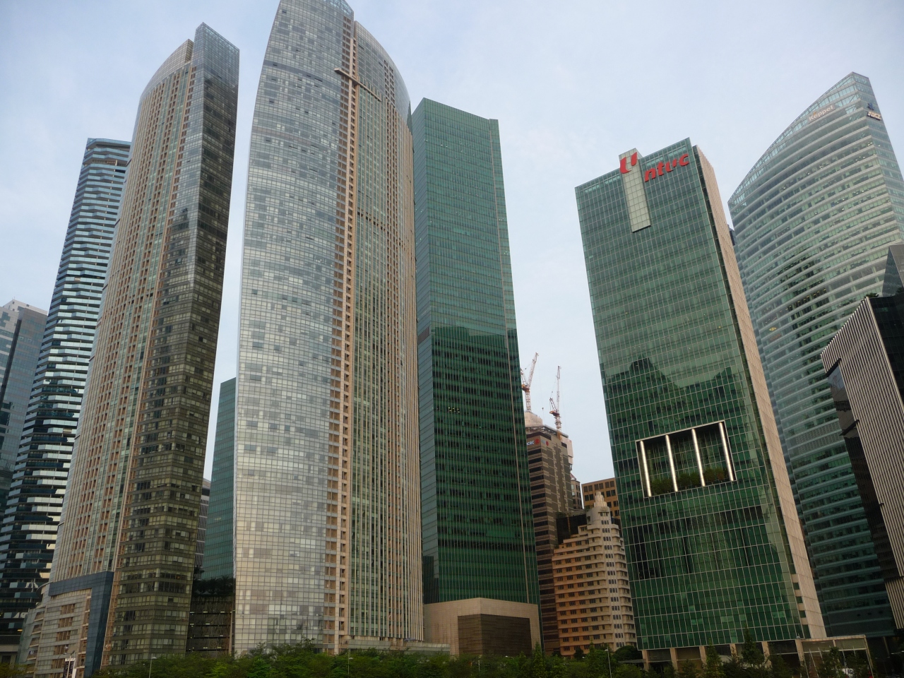 シンガポール経済の躍進ぶりを、象徴している真新しい高層ビルの林立。しかもこれらのビルは、全てデザイン的・色彩的にバランスがとれ、美的な景観を作り上げている。