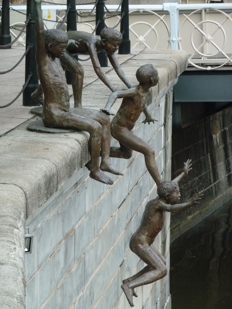 4人の子供たちが、細い手1本で繋がって、一体化した彫像。途中で折損しないかと、気になる。