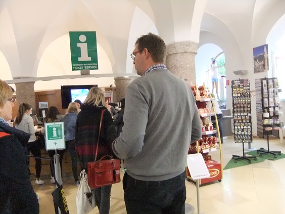 旧市街の観光案内所でインスブルックカードを買いました。マリア・テレジア通りからヘルツォーク・フリードリヒ通りへと続く交差点付近にあります。スタッフにカードの開始予定時間を聞かれました。今すぐ使いたかったので"Now"と答えると、10分後くらいの時刻を記入してくれました。