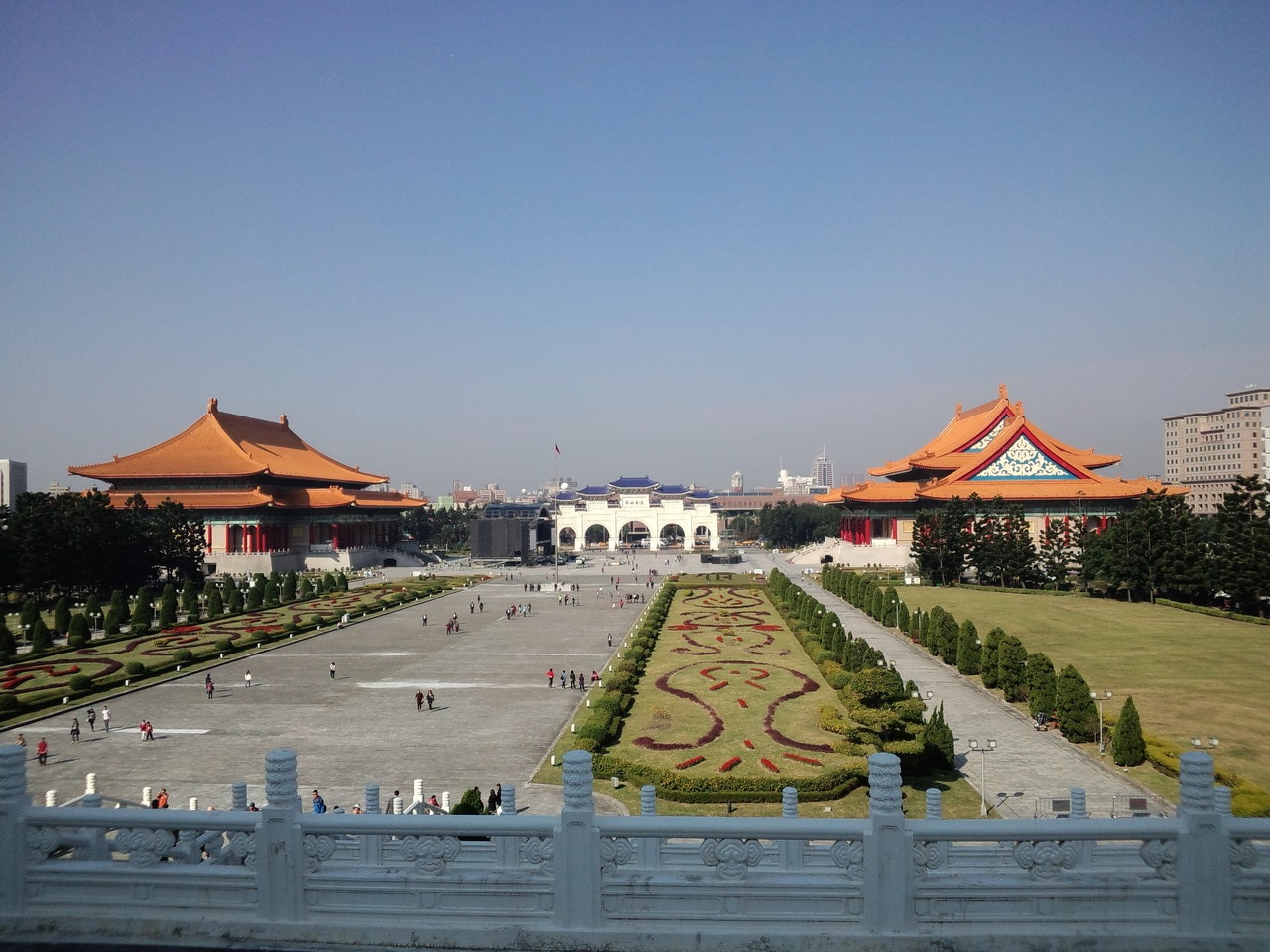うろうろ歩くより、中正記念堂の階段の高い位置から見下ろすように全体をゆっくり眺めるのが良いのではないかなと思います。晴れた気持ちの良い日だったので、建物の色もきれいだし、迫力ありました。