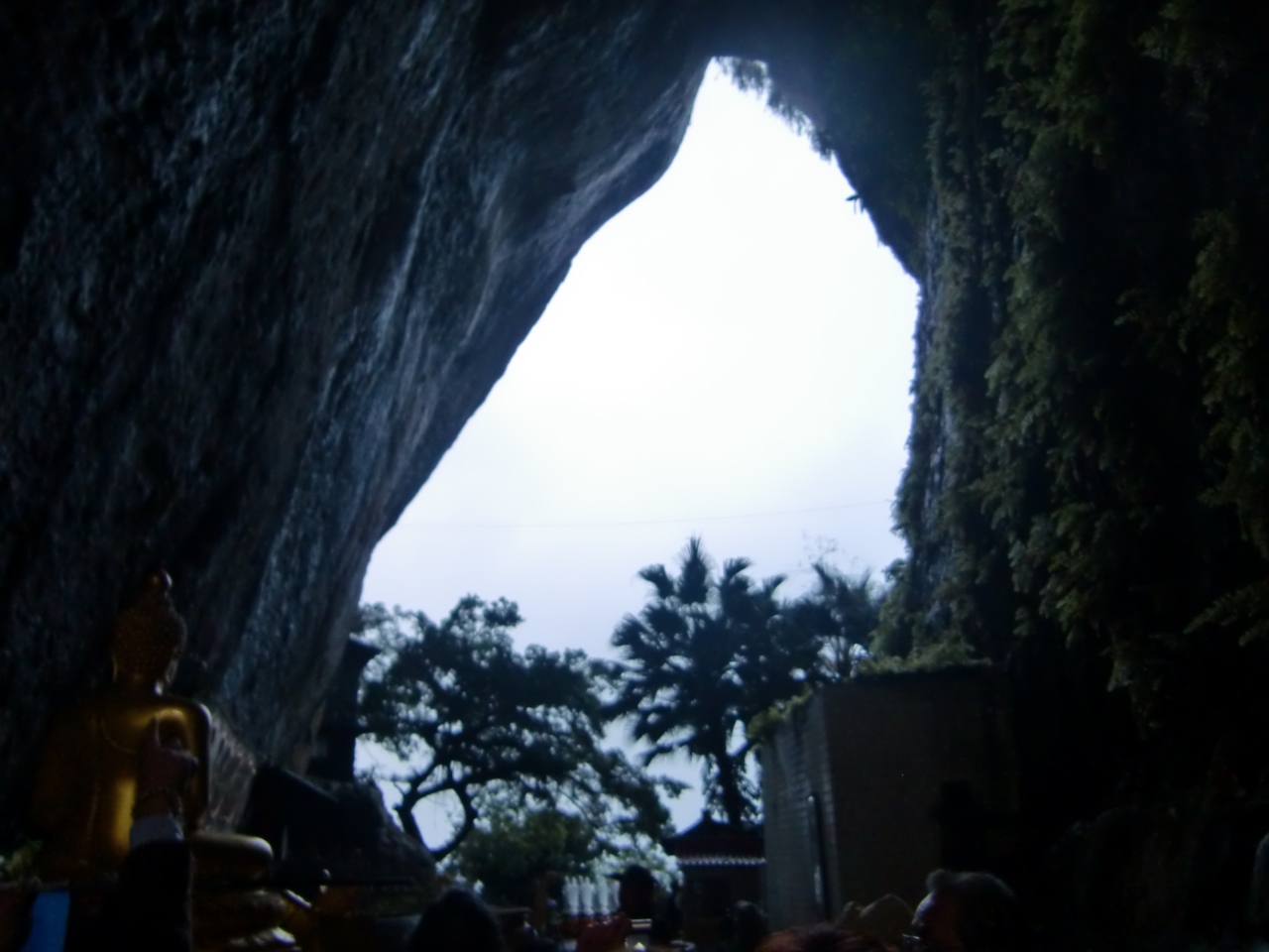 台東から花蓮に向かう海岸道路沿いに大きな洞窟があります。海水の浸食により太古にできたそうです。洞窟の中にも仏像がたくさんまつられています。とても神秘的な感じでした。最も大きな洞窟の中に入りましたが、中から観ると入口はちょうど台湾の形に見えました。