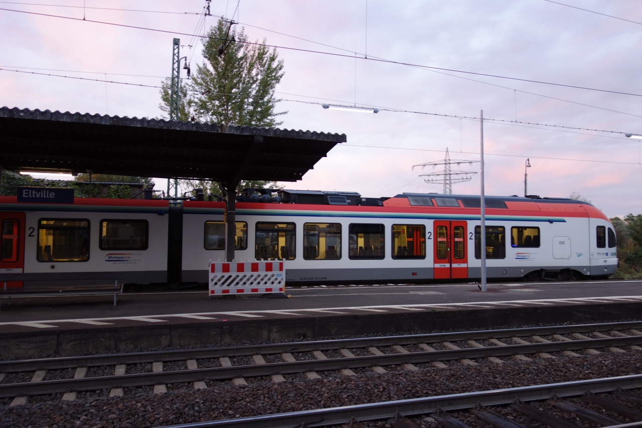 楽しかったリューデスハイム観光も終了し、フランクフルト行きの列車へ乗車。ところが、途中のEltivileでその列車が運行停止に・・・