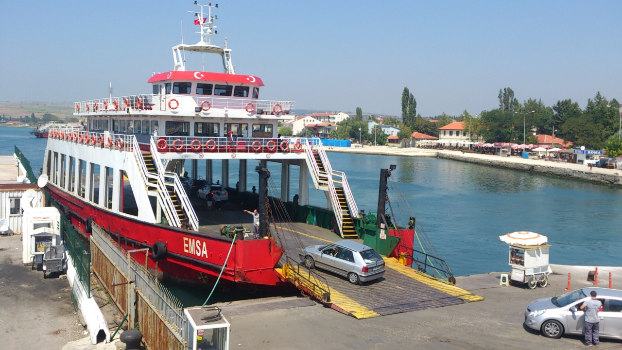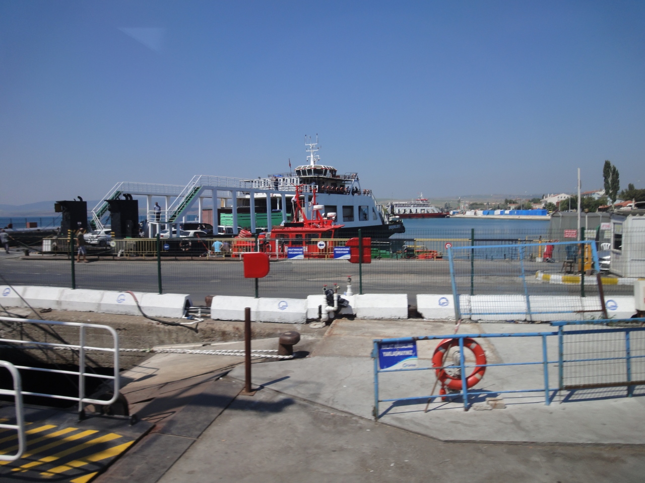 イスタンブールからチャナッカレへ向かうのにバスごとフェリーで乗り込みダーダネルス海峡を渡りました。