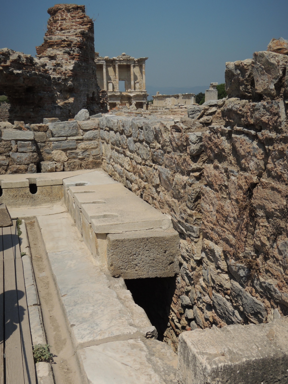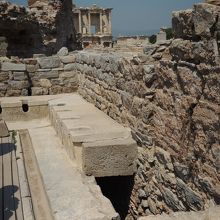 ハドリアヌス神殿の近くに位置する、男性専用の水洗い式トイレの跡。