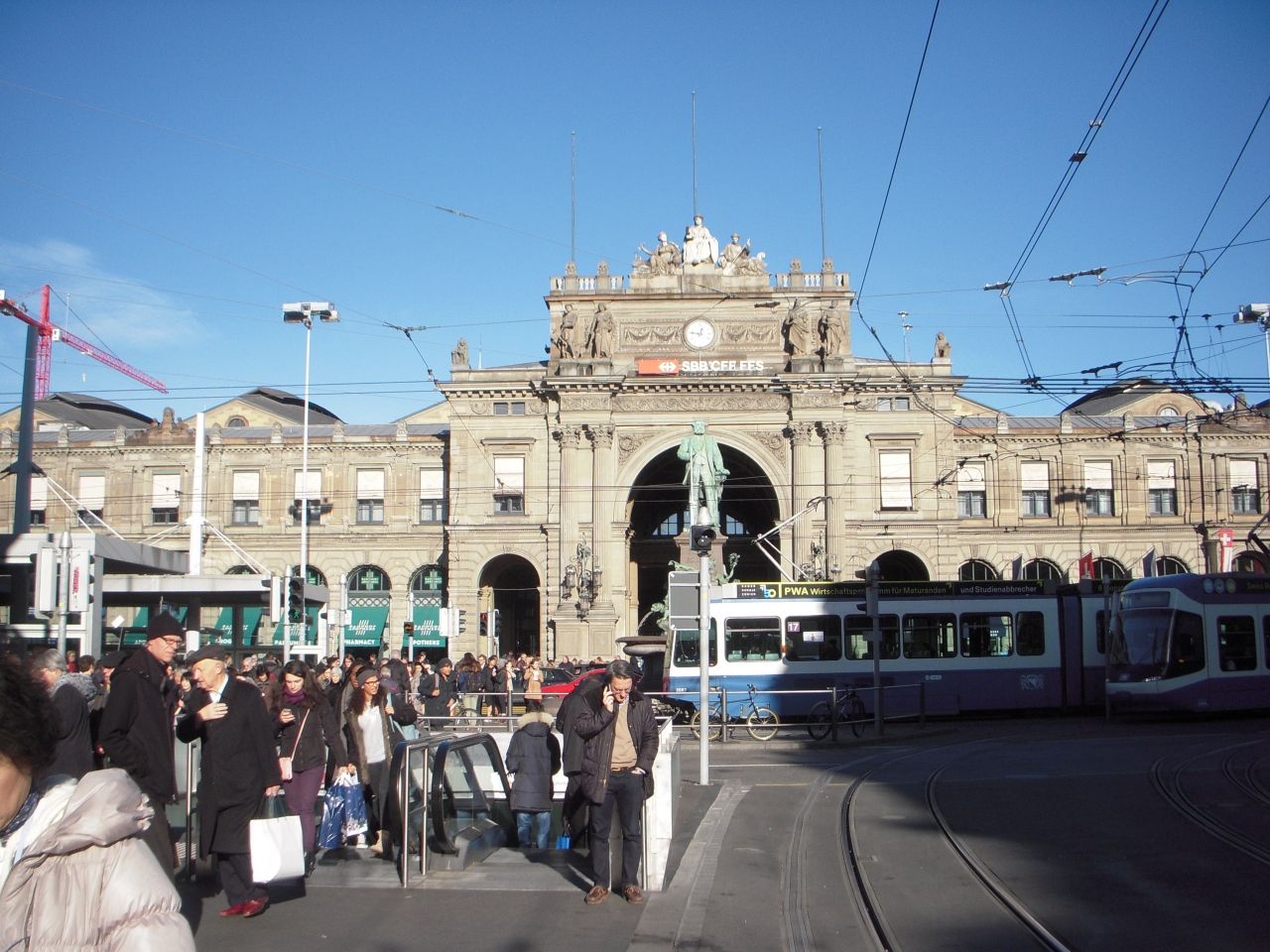 国内の列車と隣接のドイツ、イタリア、フランス、オーストリアとの間で発着する国際列車のターミナルとなっており、1日に2900本以上の列車が出入りする忙しい駅だそうです。