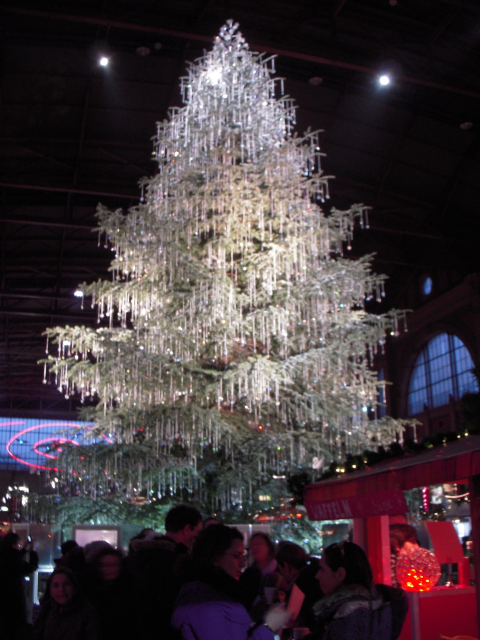 駅構内のクリスマスマーケットにはスワロフルキーのクリスタルで飾られたクリスマスツリーがありました。