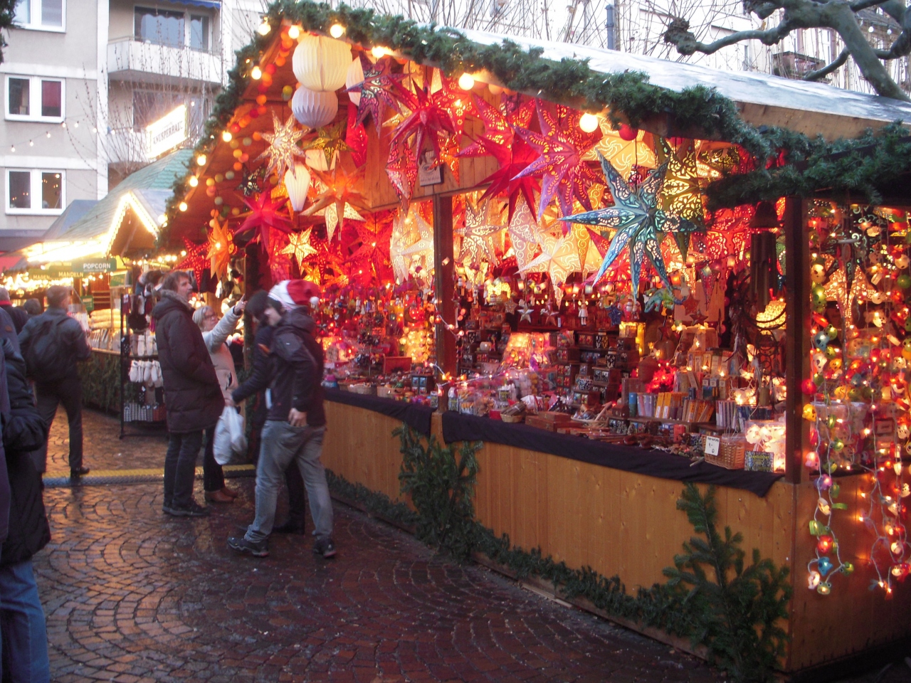 訪れたときは、広場中いろいろな彩りのクリスマスマーケットの屋台が並んでいました。