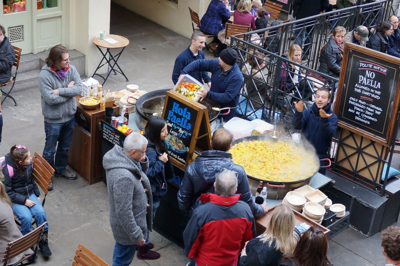 外で大きな鍋でパエリアを作っていて、そこが人気で並んでいたので、ランチにパエリアを食べました。