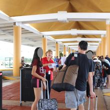 また、港の建物前にはタクシーもずらりと並んでいますが、無料でオールドサンファンを周れるトロリーバス乗り場もあります。