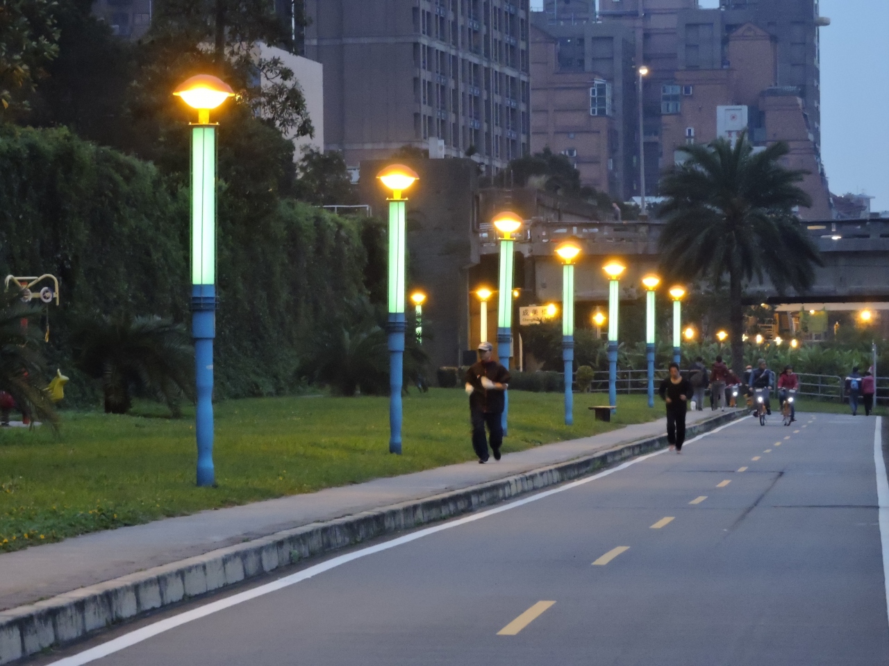 以前はよく氾濫した為に台北市の一部で蛇行していた川の流れを直線化したために堤防内の両側には様々な公園が設置されています。サイクリング、ジョギング、散歩、釣りをしている人も多く見かけます。