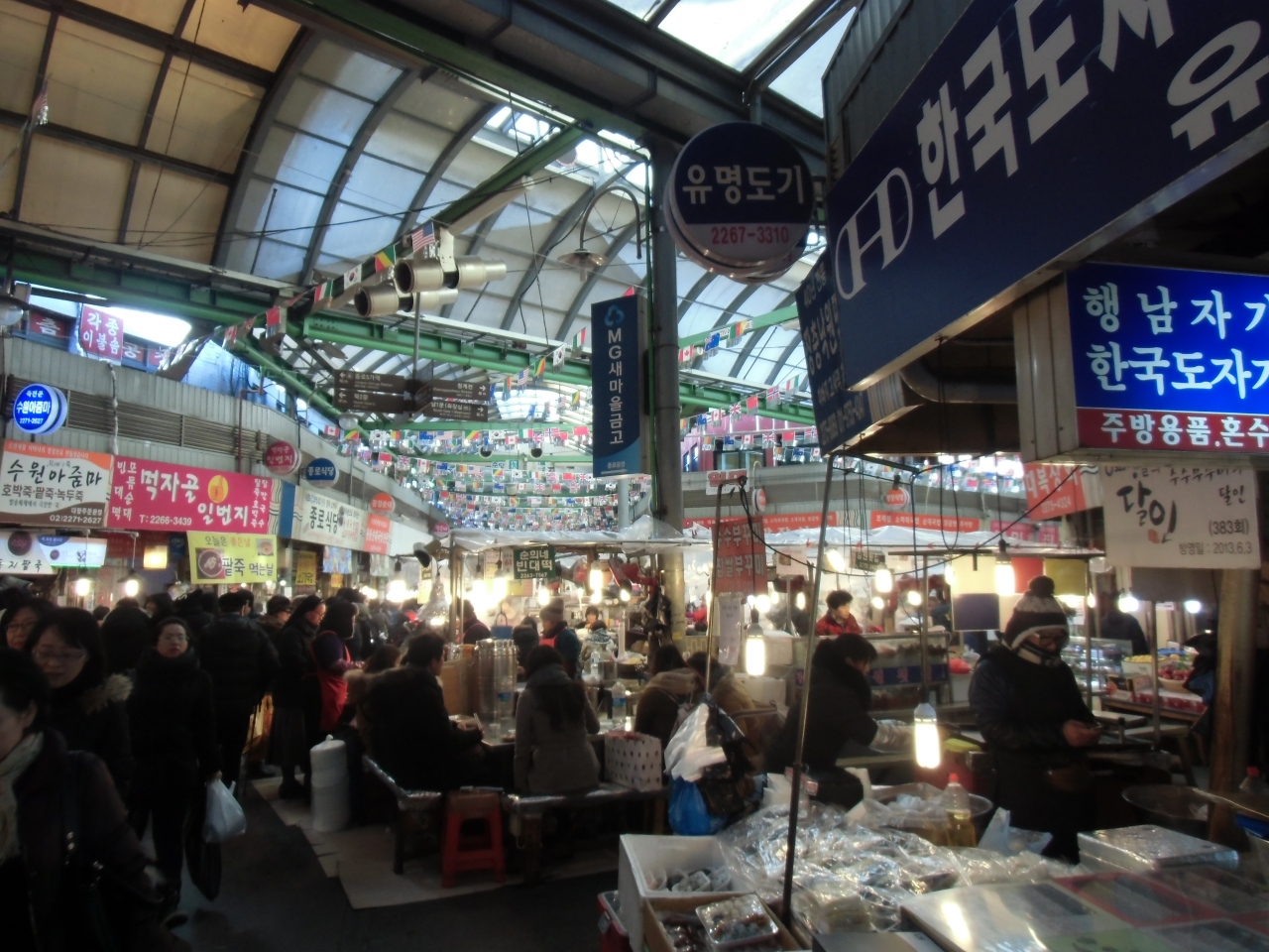 観光客が集まる中央には、海苔巻きやトッポッギ、チジミ、スンデなどをを食べれる屋台が集まり活気がありました。