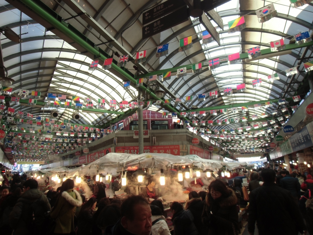 とても広い市場で、南大門市場よりもこちらの広蔵市場のほうが大衆市場のようで