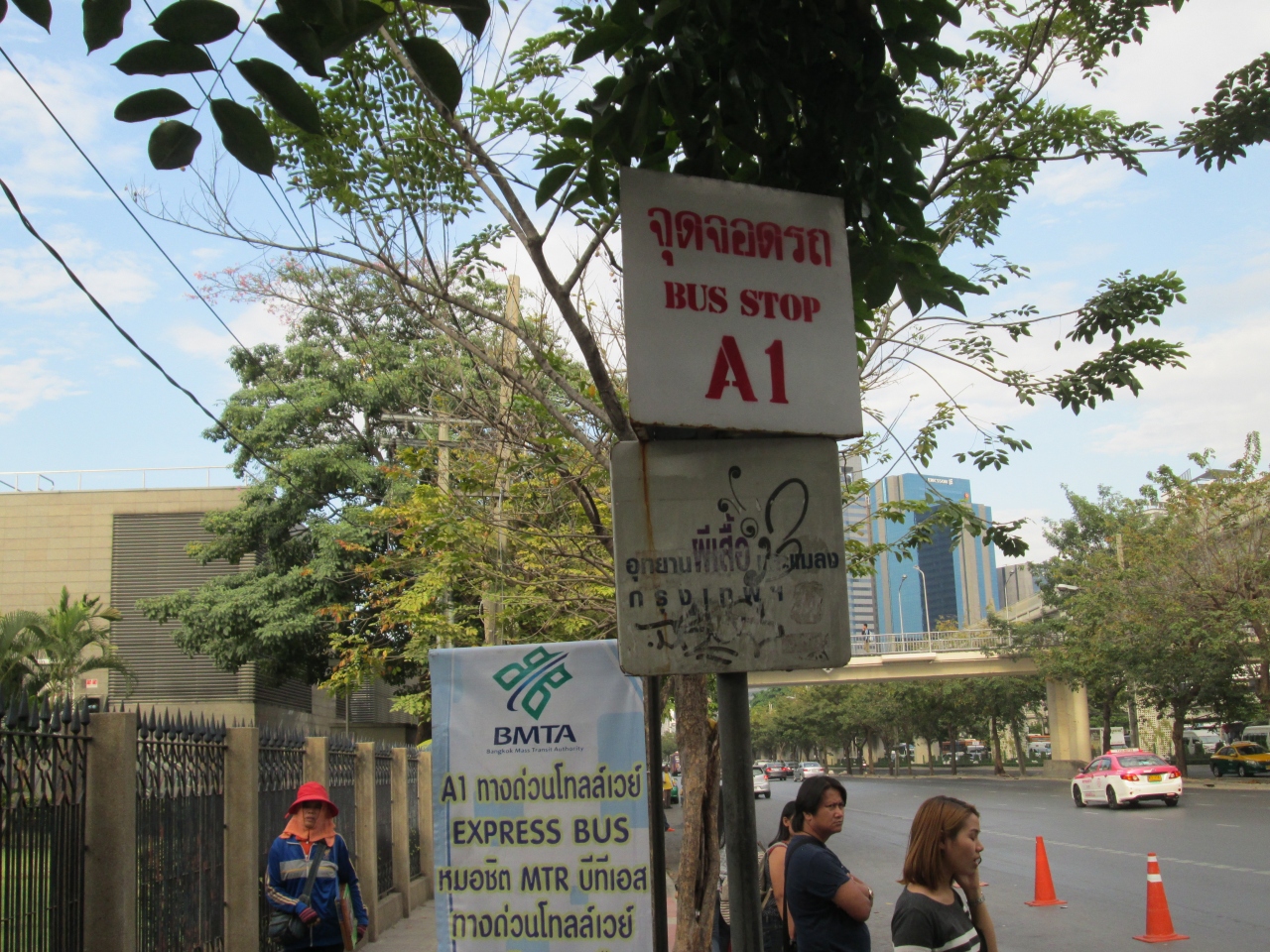 ドムアンへ向かって左手の歩道沿いに、バンコクにしては珍しく、はっきりとA1という路線の表示付きのバス停がありました。