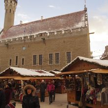 ラコエヤ広場に面したところにあるのがタリンの旧市庁舎です。。目の前のラコエヤ広場は旧市街の中心部に位置するので人々がたくさんいてにぎわっていました。旧市庁舎自体を目的に訪れる人は多くはないと思われます。